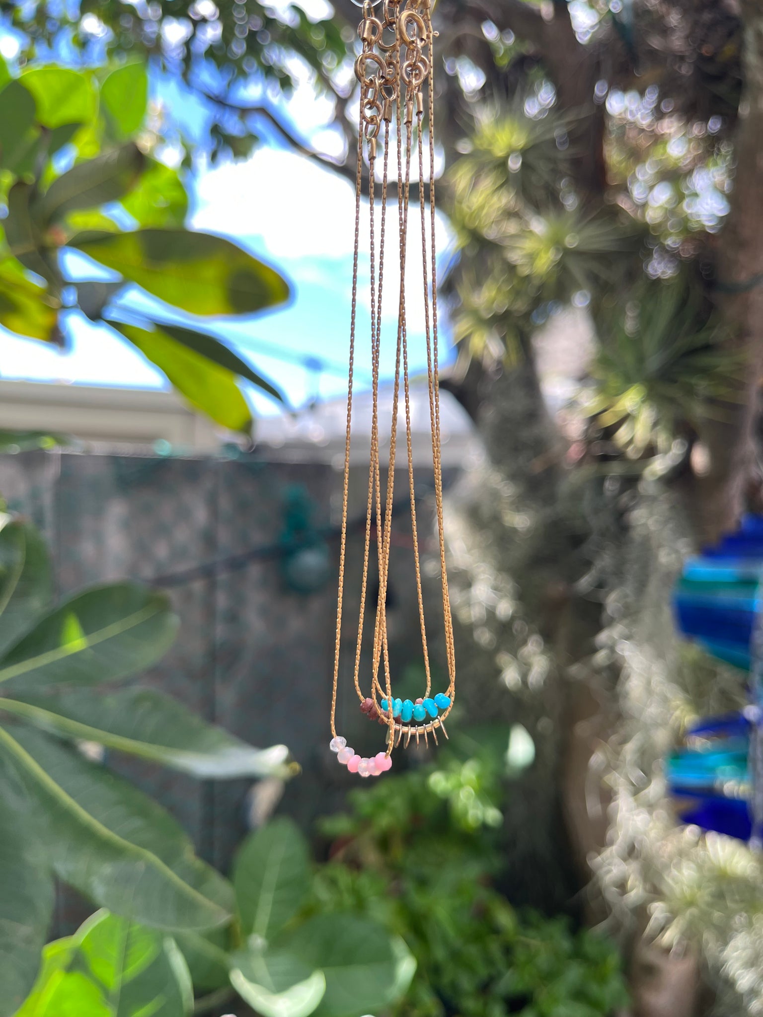素材:★ターコイズ(2.5mm)・14kgfチェ―ン・★ピンクオパール(2mm)・14kgfチェ―ン★オニキス(2mm)・14kgfチェ―ン★14kgfディスクチャーム(4mm)/チェーン