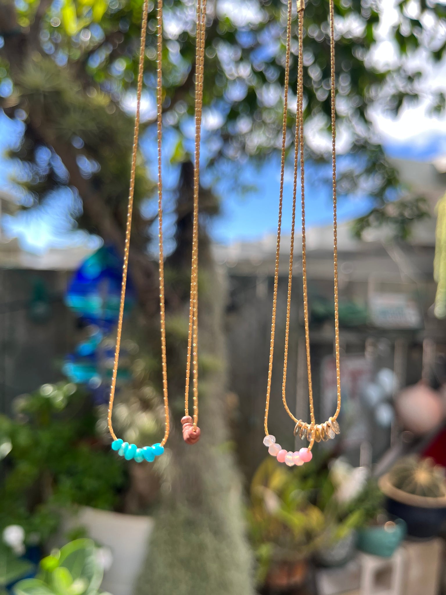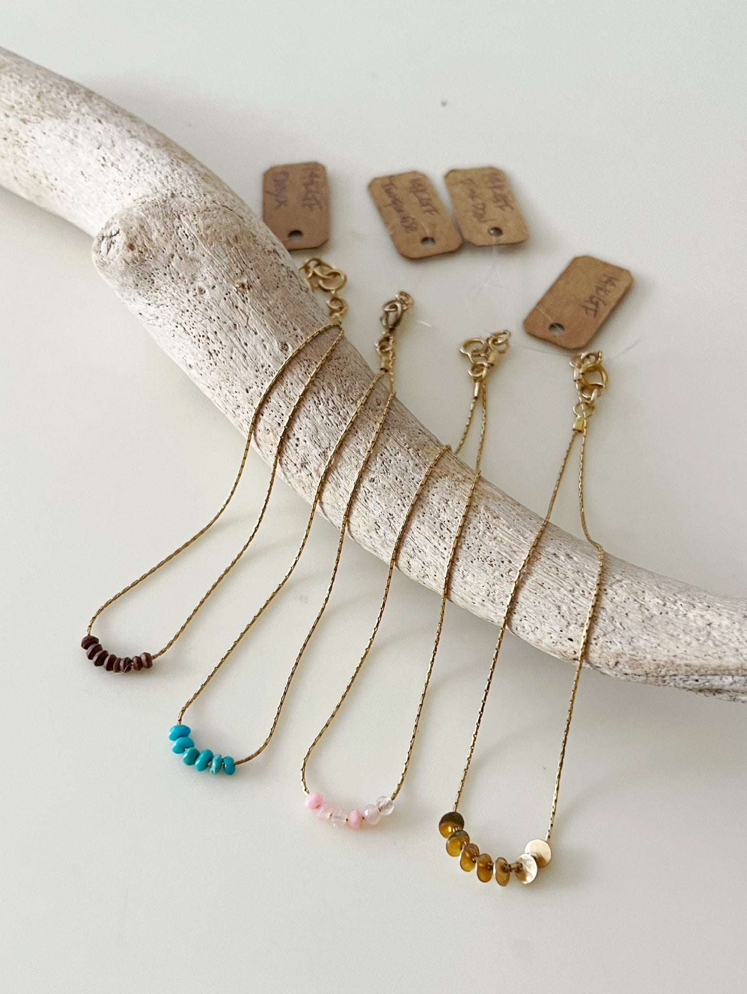 Materials: ★turquoise(2.5mm)/14kgf chain ★pink opal(2mm)/14kgf chain ★onyx(2mm)/14kgf chain ★14kgf disc charms, chain