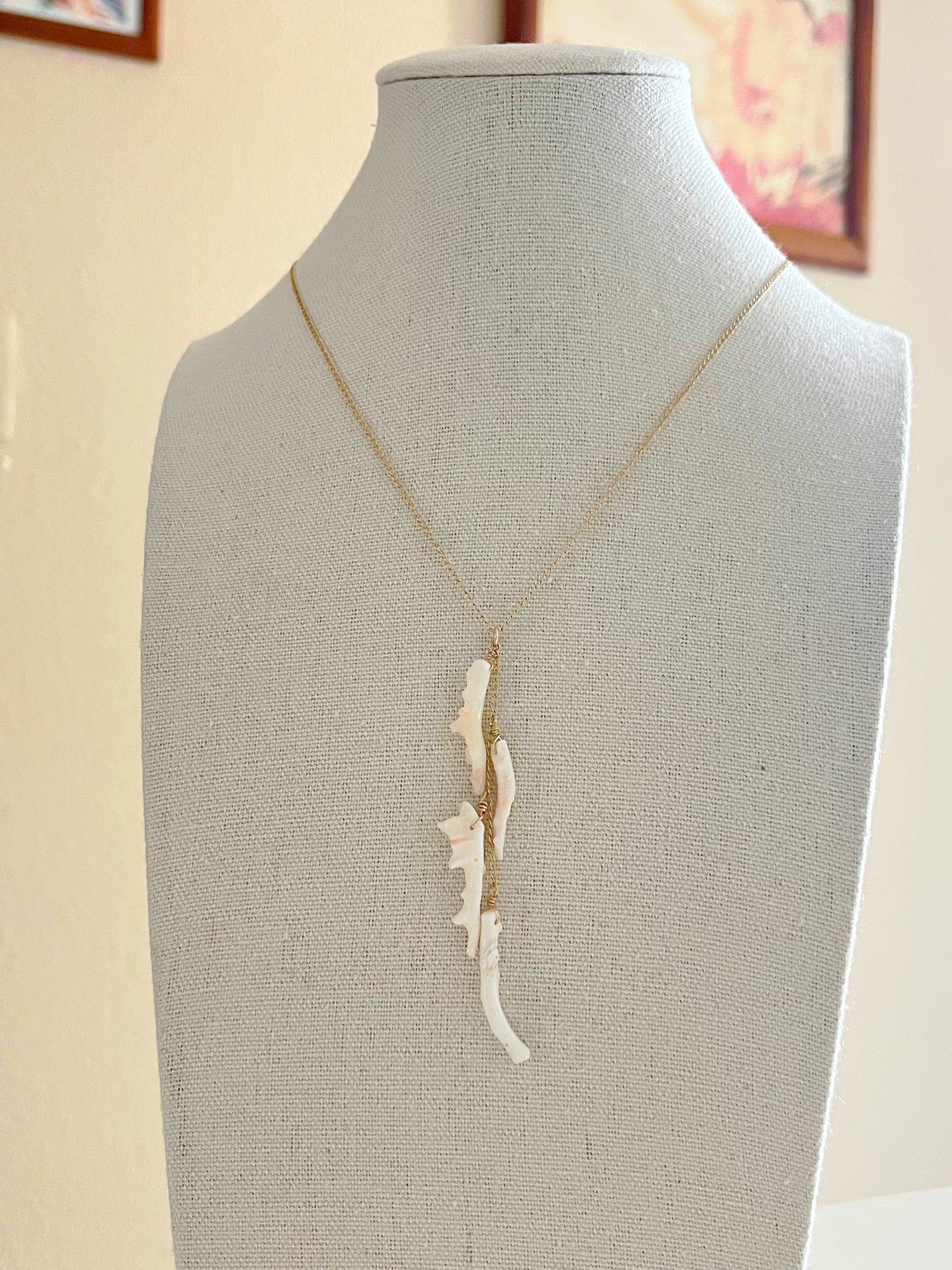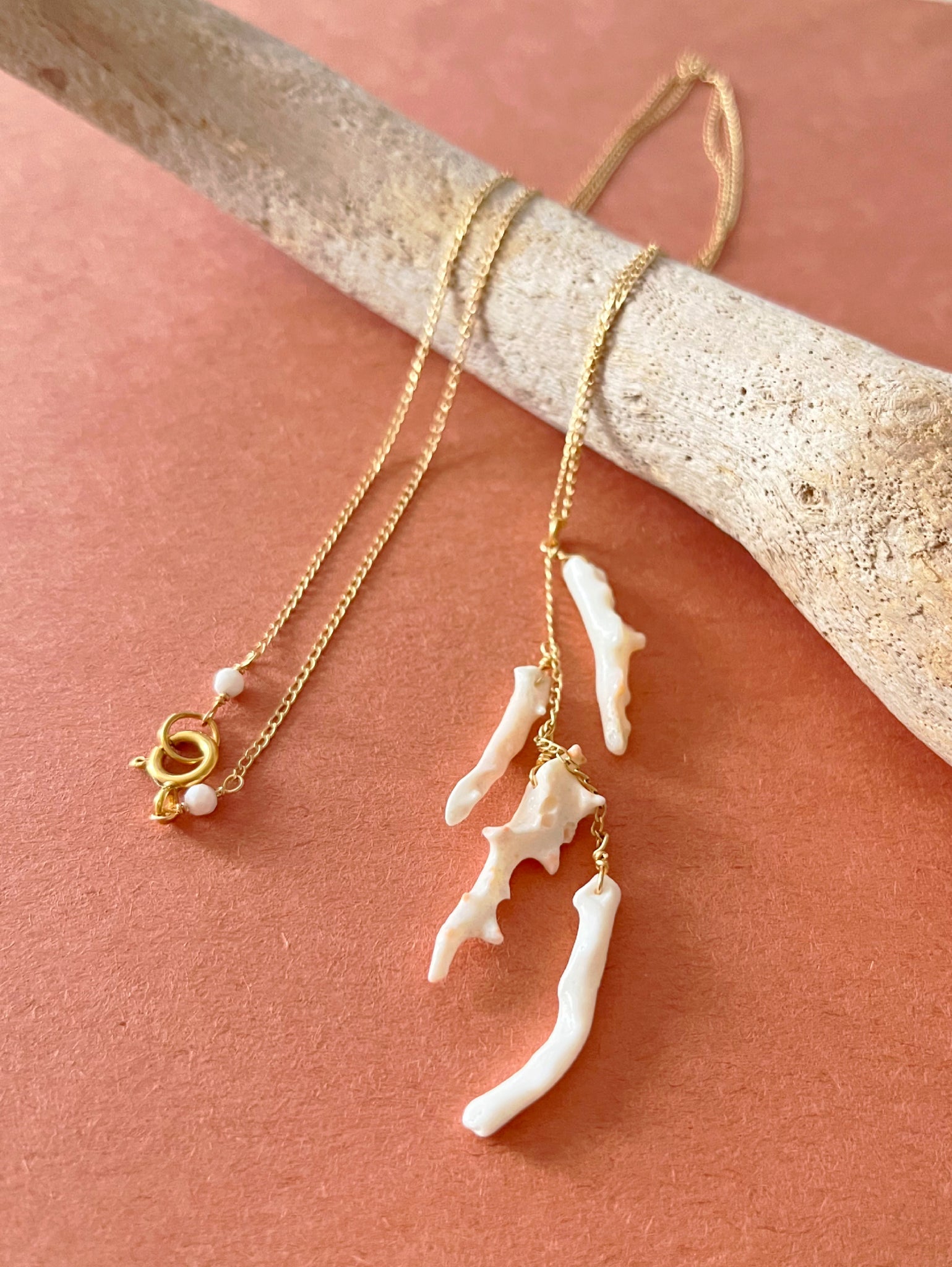 Materials: Natural Angel skin Coral branch (Head charm length 3"/14KGF chain/Round conch shell(3.5mm)